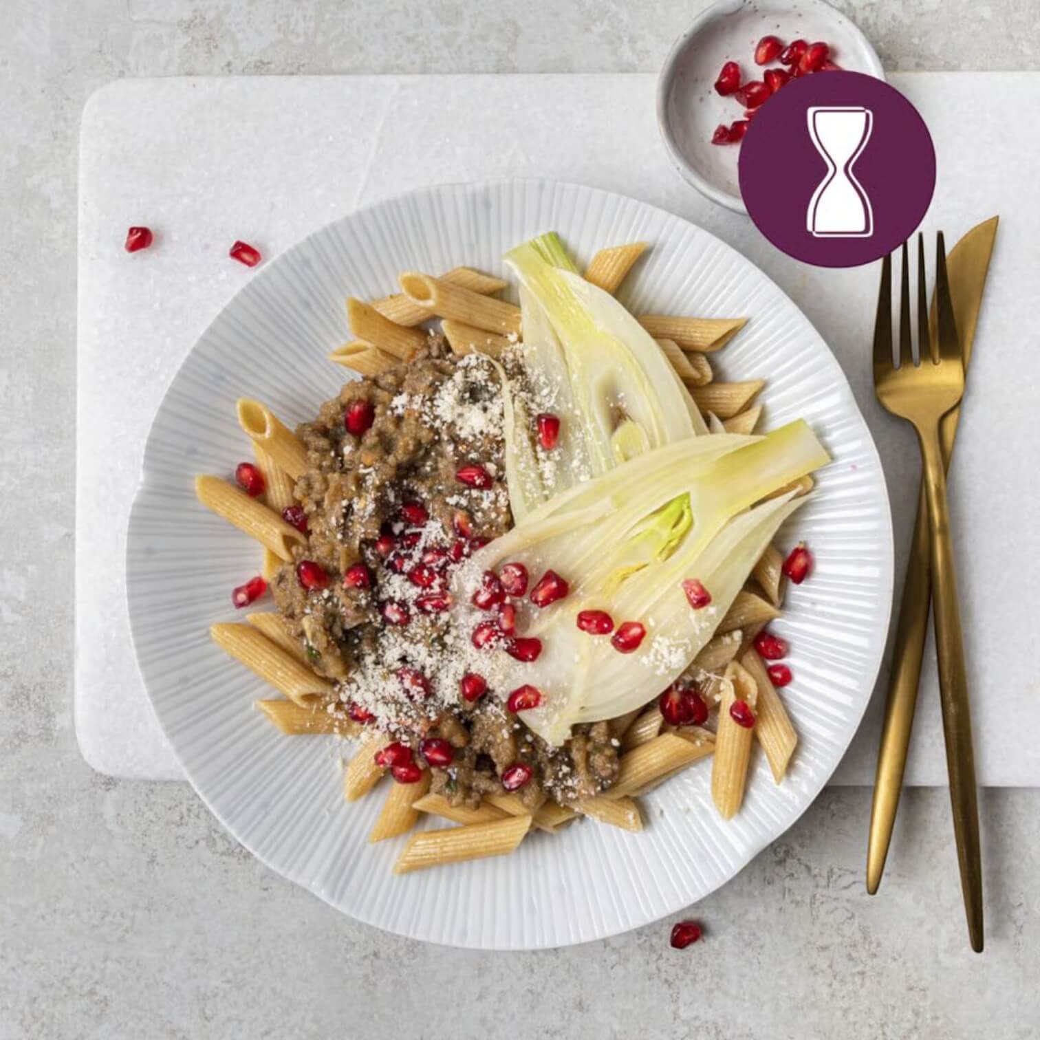 Ontdooid: prik gaatjes in de folie, 4-5 min in de magnetron of warm het een paar minuten op in een pan.
